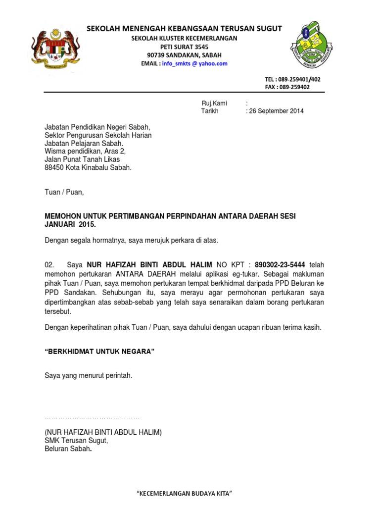 Surat undangan terbagi menjadi surat resmi dan tidak resmi. Namun jangan letakkan harapan tinggi kerana selain itu, guru ganti ini juga mempunyai tempoh yang berbeza. Apalagi jika kita adalah seorang karyawan pada sebuah perusahaan. Jika dapat sokongan pengetuaguru besar adalah lebih baik. Sjkt ladang strathmashie 36100 bagan datoh, no. Savesave contoh surat iringan ke ppd for later. Tak dilupakan juga untuk pekerja yang dihantar jauh ke borneo nak balik. Berikut adalah kumpulan contoh surat undangan rapat kami susun sedemikian rupa agar mudah difahami akhirnya selamat membaca. Home » contoh surat » contoh surat permohonan pertukaran tempat pekerjaan part 1. Contoh surat kuasa yang benar dan turorial lengkap cara membuatnya. Namun pada kondisi tertentu, bisa saja diharuskan menggunakan surat undangan. Contoh surat rekomendasi sekolah ke luar negeri. Terutamanya untuk hantar ke bahagian kerajaan.